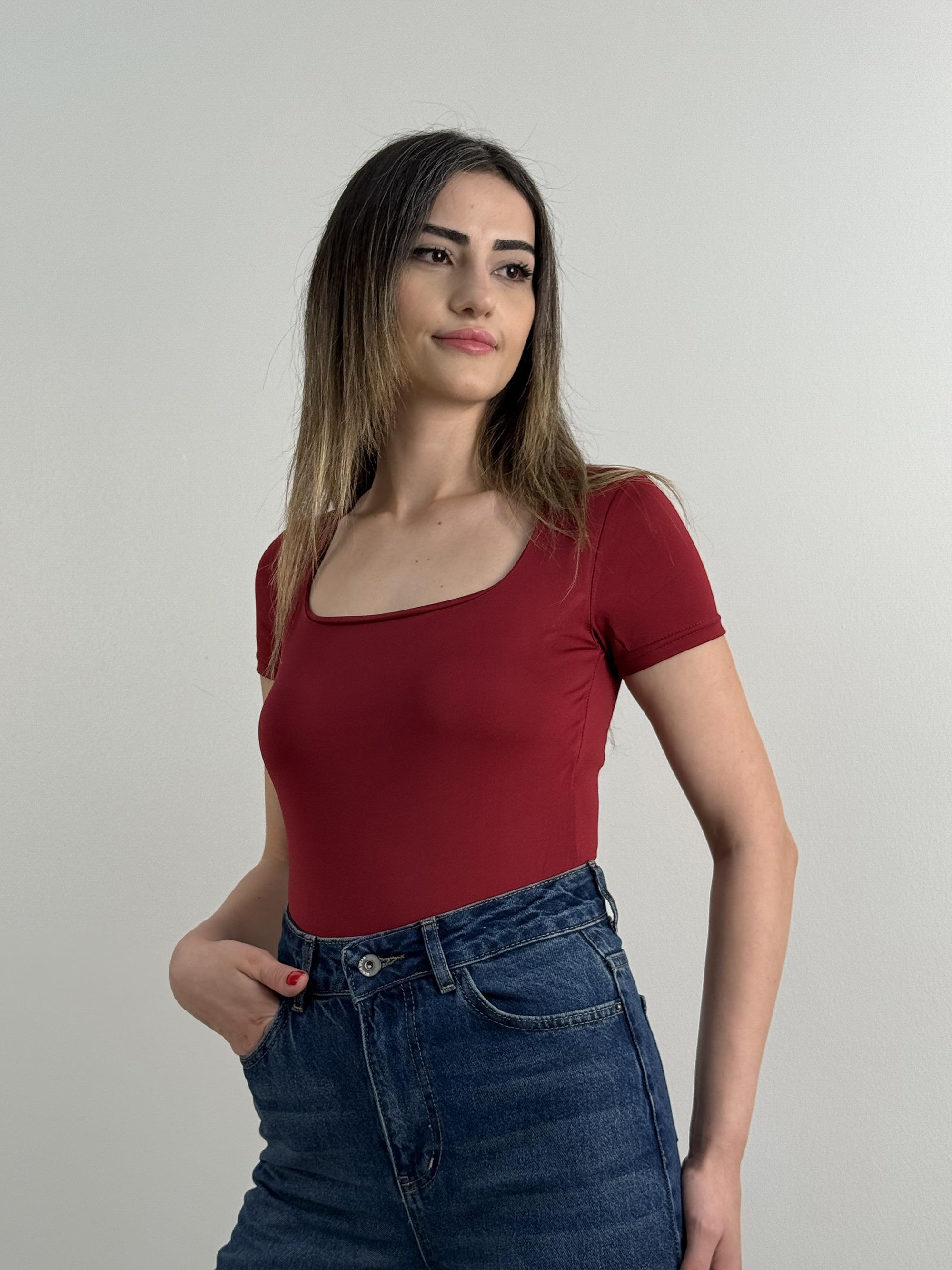 KISA KOLLU, KARE YAKA, ÇIT ÇITLI BODYSUIT