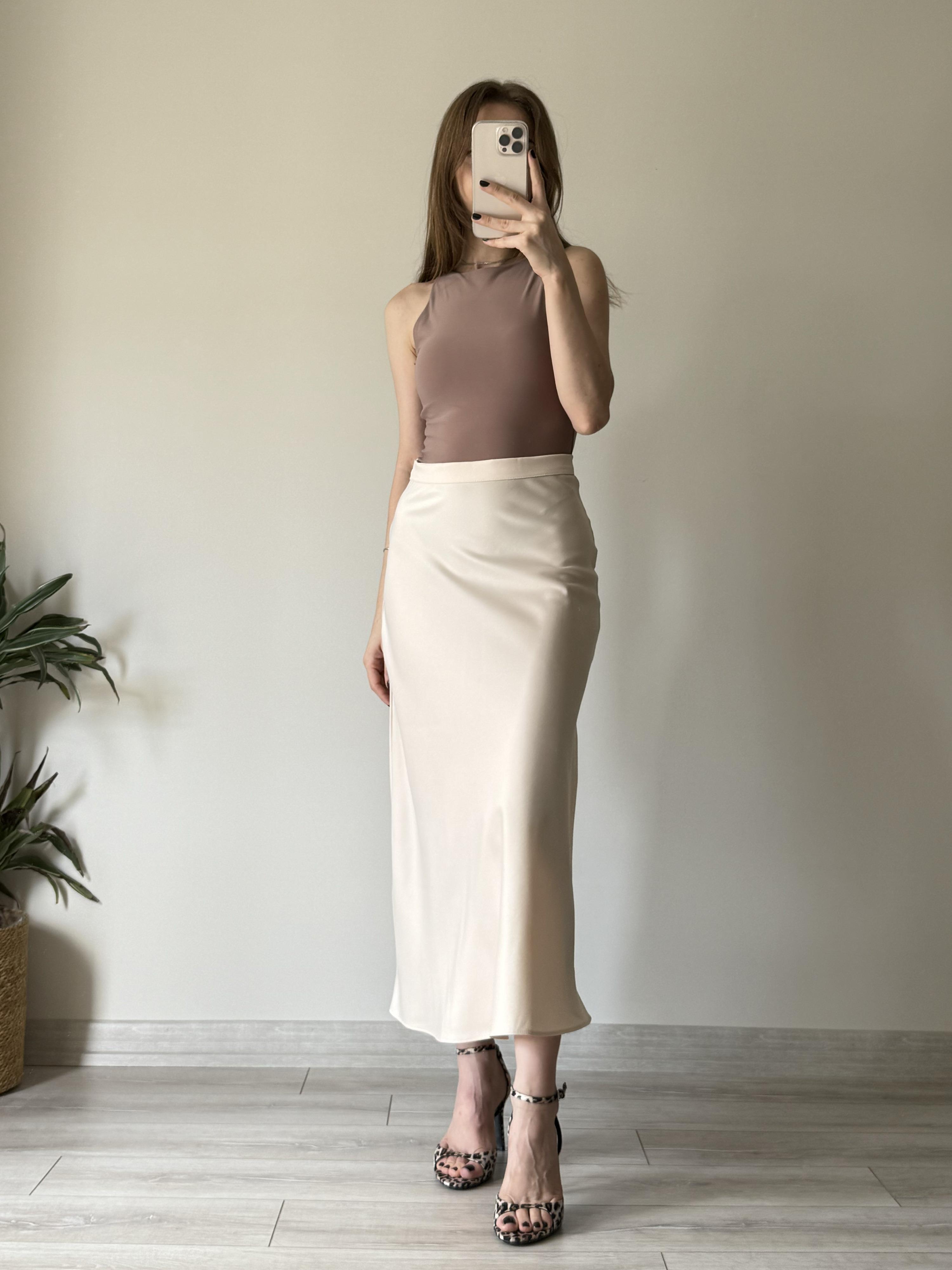 YÜKSEK BEL, YANDAN FERMUARLI SATEN MİDİ BOY ETEK