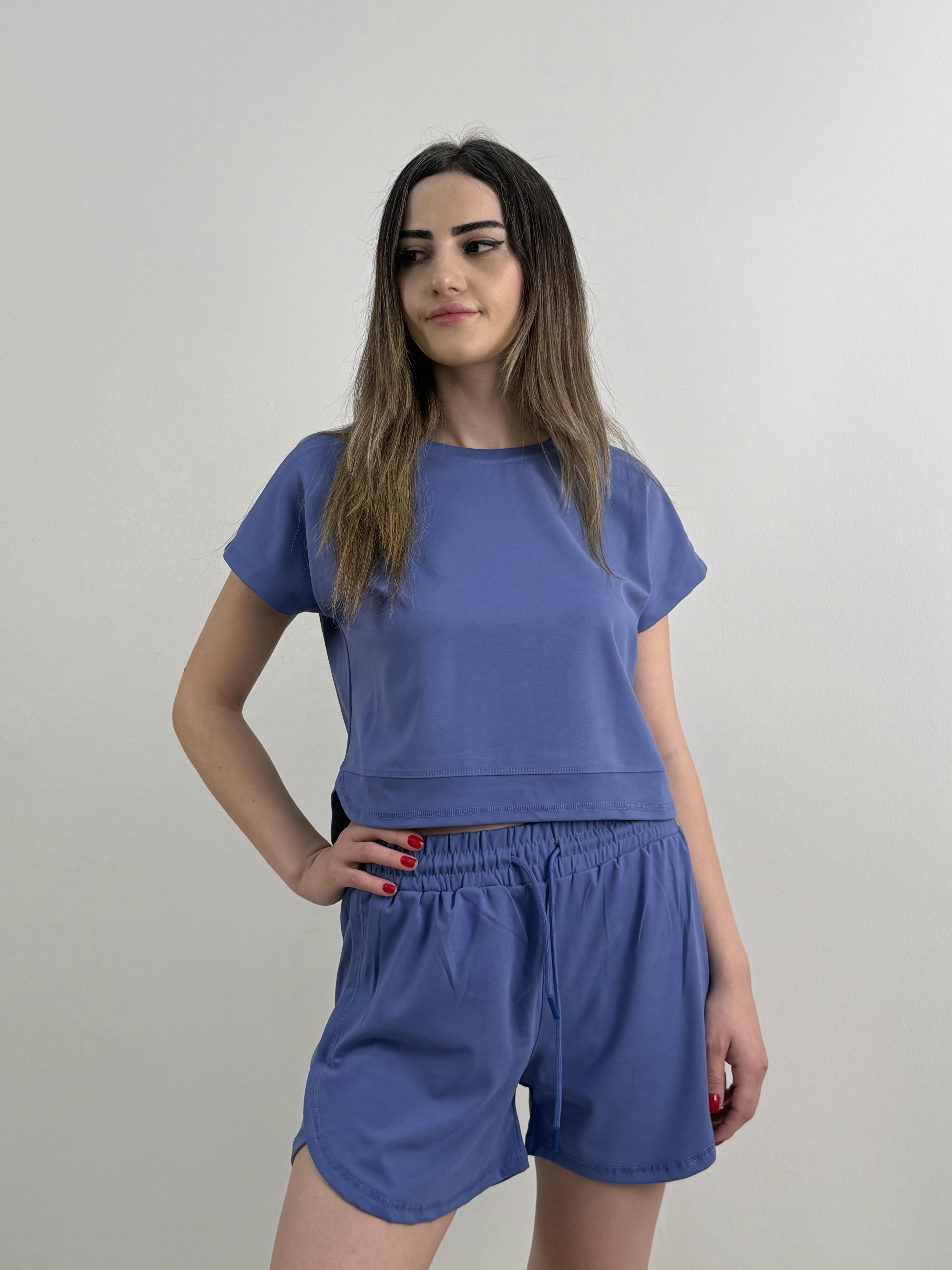KISA KOLLU, BİSİKLET YAKA, T-SHIRT NORMAL BEL, BELİ LASTİKLİ VE BAĞCIKLI, ŞORT TAKIM